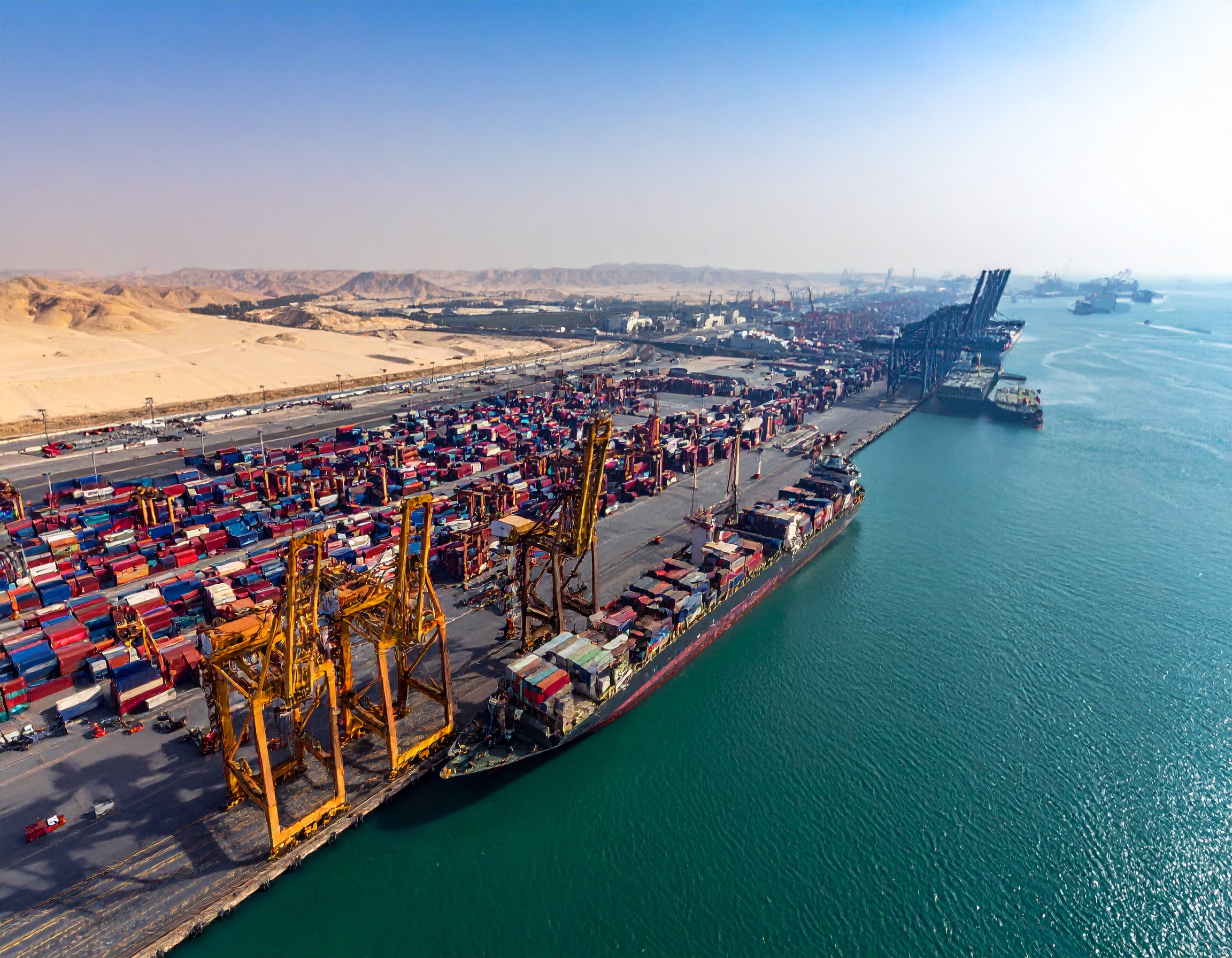 ميناء جبل علي (دبي): الأكبر في الشرق الأوسط ويعد مركزًا عالميًا لإعادة التصدير.