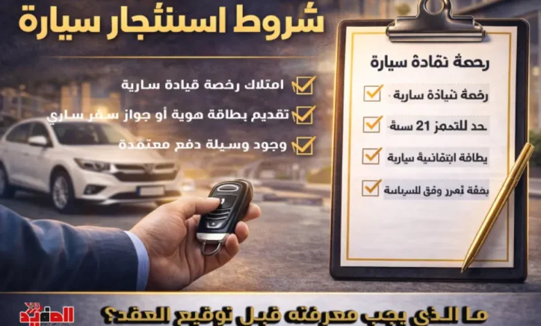 فهم شروط استئجار السيارة قبل التعاقد يضمن تجربة أكثر أمانًا ووضوحًا، ويجنب الخلافات التي قد تظهر لاحقًا.